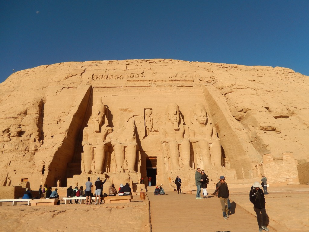 Excursión por carretera a los majestuosos Templos de Abu Simbel, construidos por Ramsés II en honor a él mismo y a su esposa Nefertari.